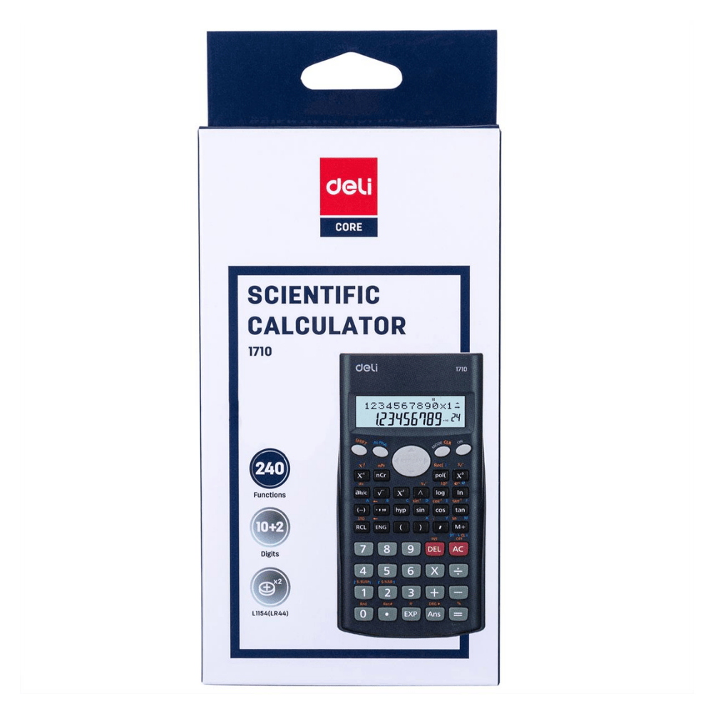 🔷 Description The Deli E-1710 Scientific Calculator is a versatile calculator designed for students and professionals who need accurate scientific calculations. With 240 built-in functions, it supports mathematics, algebra, trigonometry, and statistics, making it ideal for school, college, and technical studies.